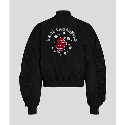 The LNY Bomber by Karl Lagerfeld blends high-fashion with festive flair, offering a contemporary take on the classic bomber jacket. Designed to celebrate the Lunar New Year, this limited-edition piece features bold, festive details alongside Karl Lagerfeld's signature style. With its sleek fit and striking design, the LNY Bomber is the perfect statement piece for those looking to celebrate the season in style.
