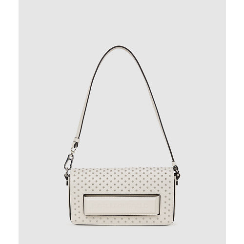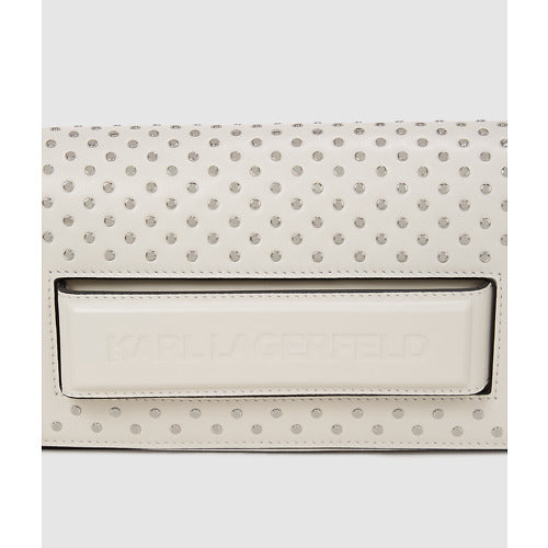 This versatile Ikon K bag can be worn off-the-shoulder or styled as a clutch. The secure flap closure features a discreet hand slot behind a tonal KARL LAGERFELD logo, while the studded embellishments add a rock-chic edge.