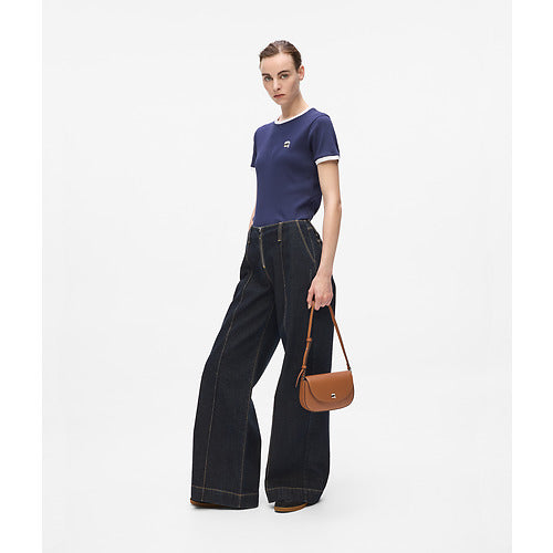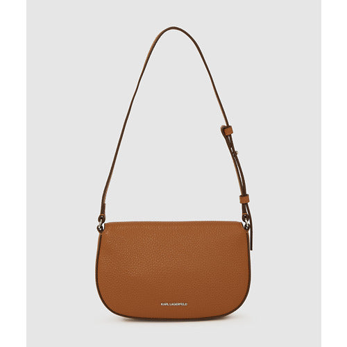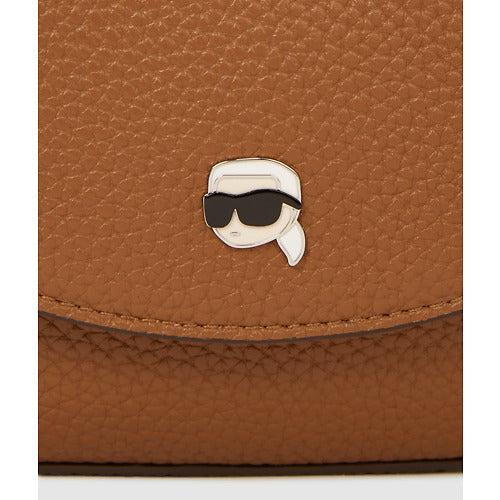 A compact pouch with a textured pebble finish and subtle Ikon Karl embellishment. An adjustable strap and flap closure complete the versatile piece.