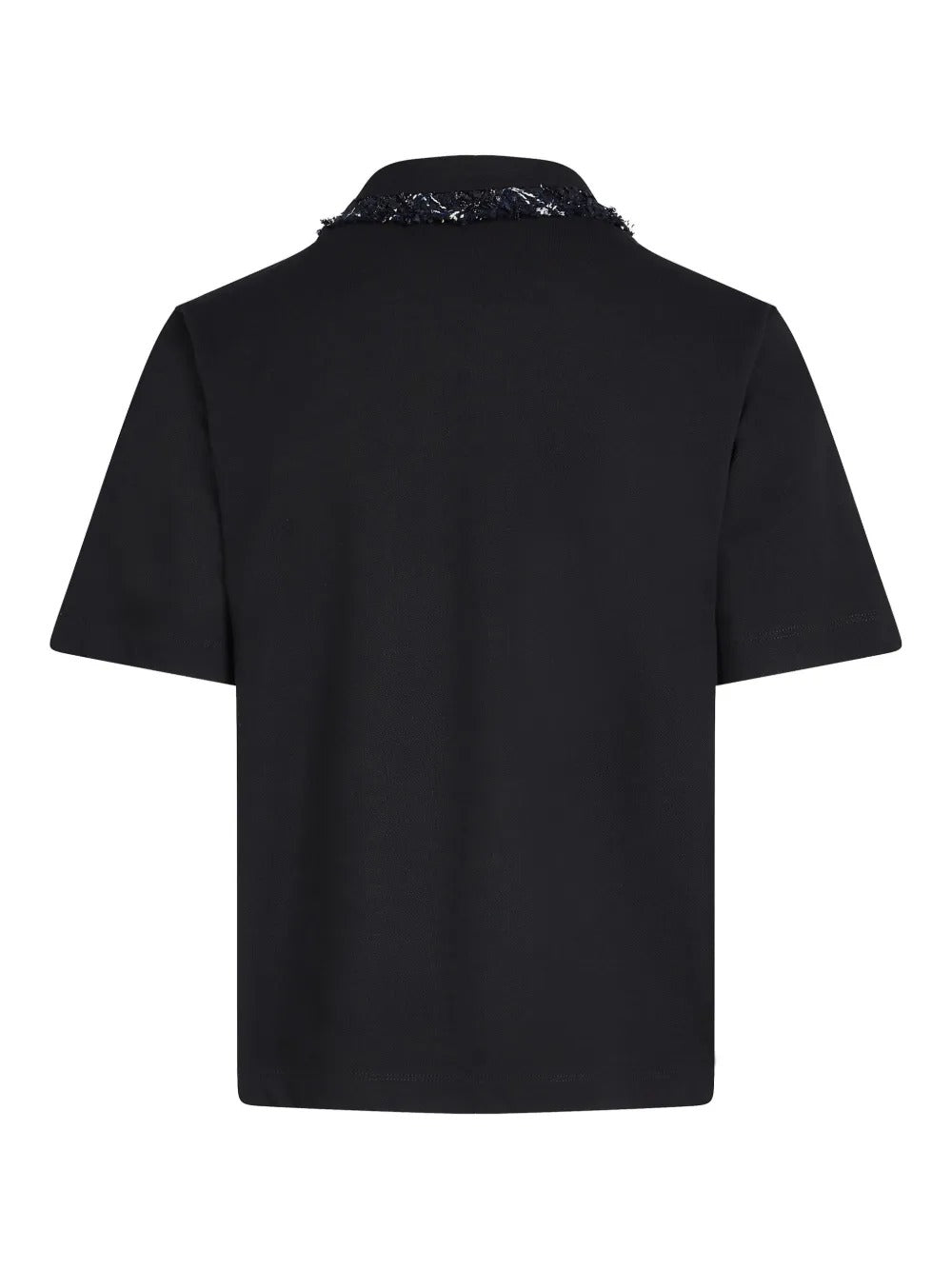 This polo shirt features a bouclé-embellished collar and button placket, offering a refined twist on casual wear. Short sleeves provide comfort, while the KARL Signature embroidery adds a distinctive touch.