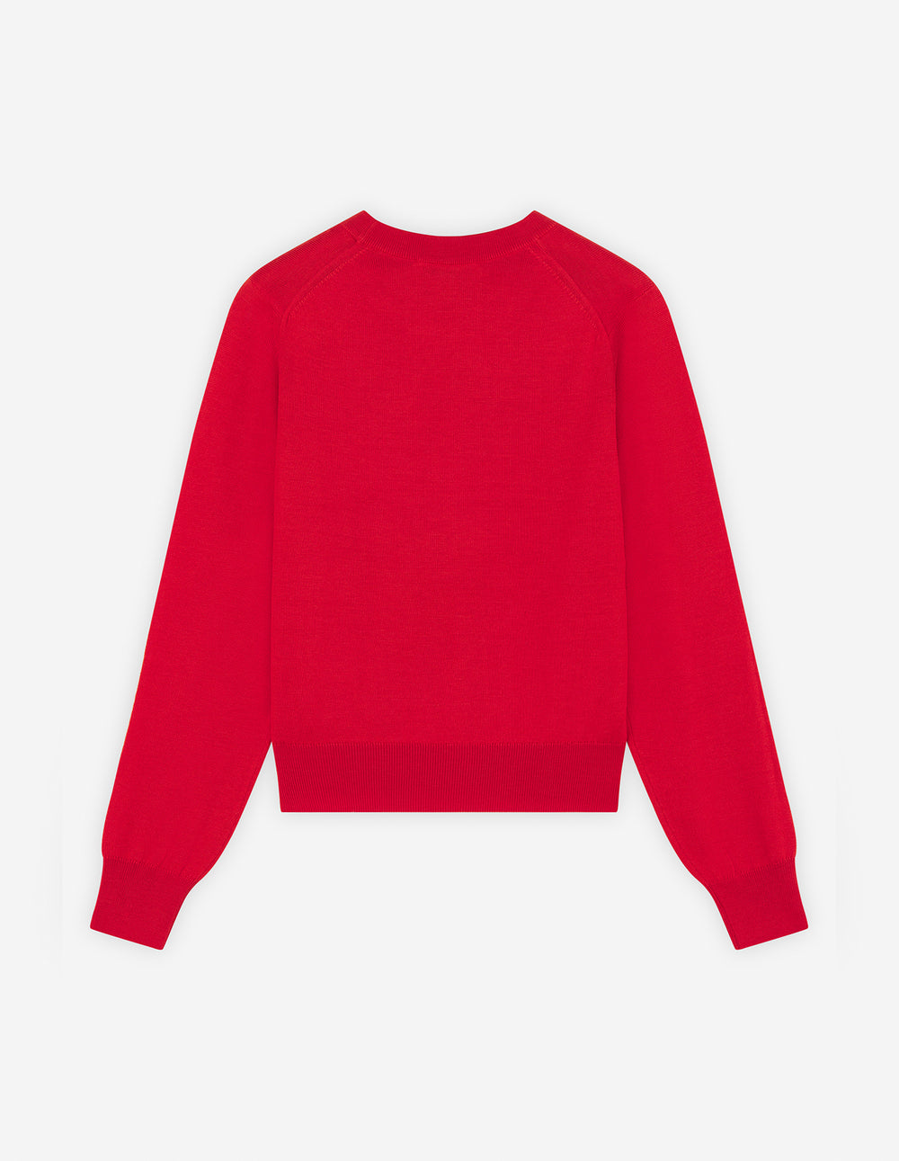 •Plain merino wool jumper•Regular fit•Crewneck•Long sleeves•Ribbing at the neckline, cuffs, and waist•Embroidered Baby Fox patch on the chest