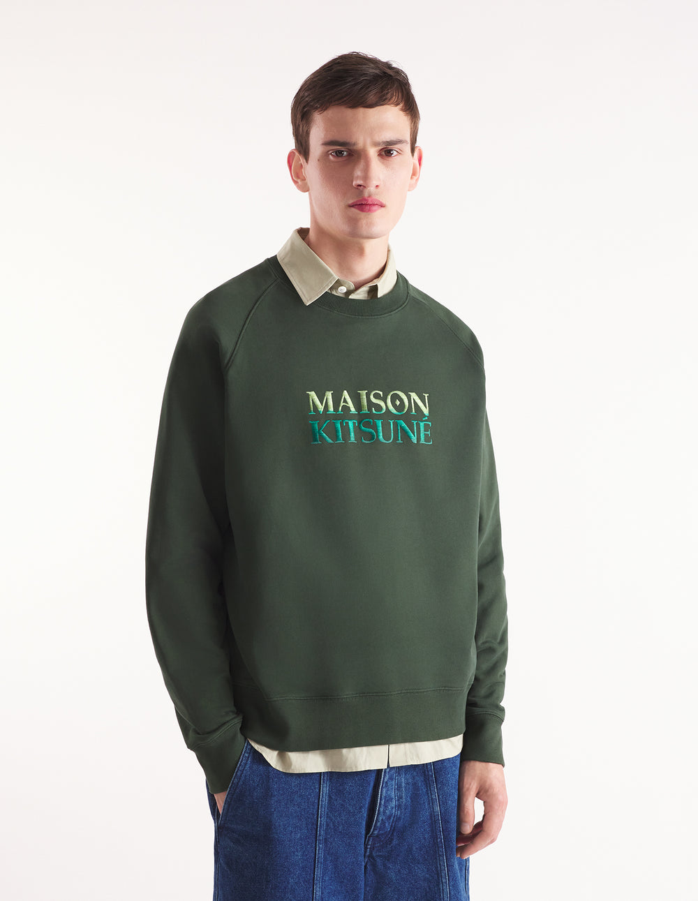 Long sleeve fleece sweatshirt. Oversized fit with “Maison Kitsuné” embroidery in color gradient at the front.
