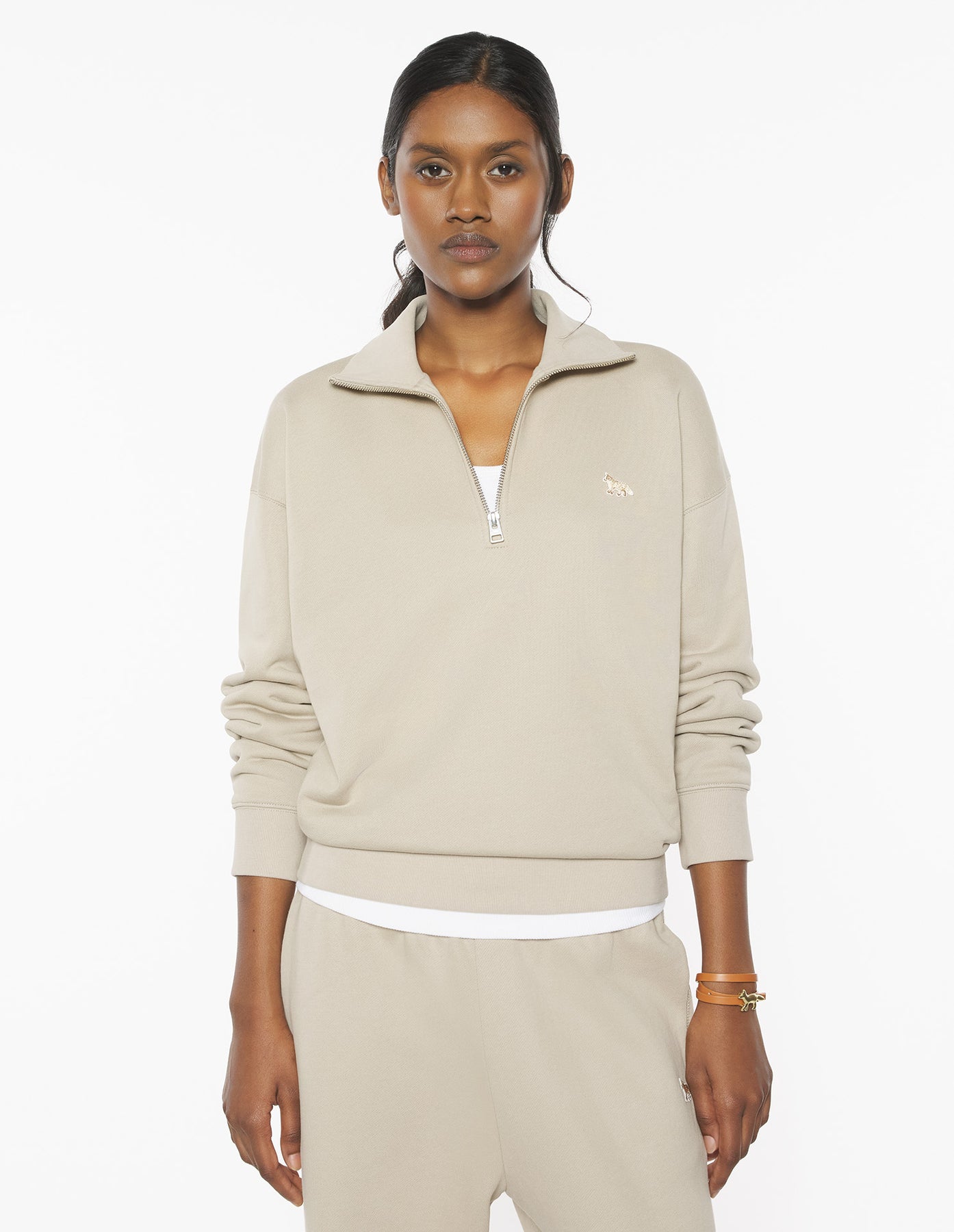 Fleece sweatshirt with half-zip collar. Comfort fit with Tonal embroidered Baby Fox patch.