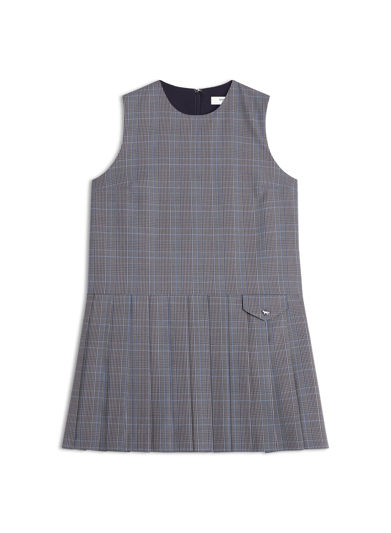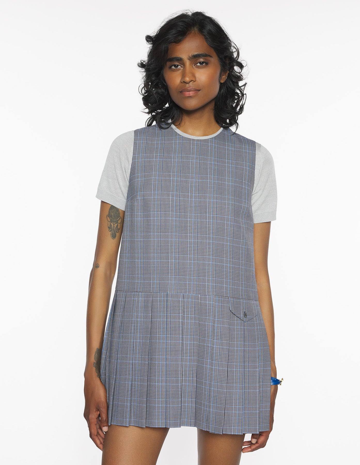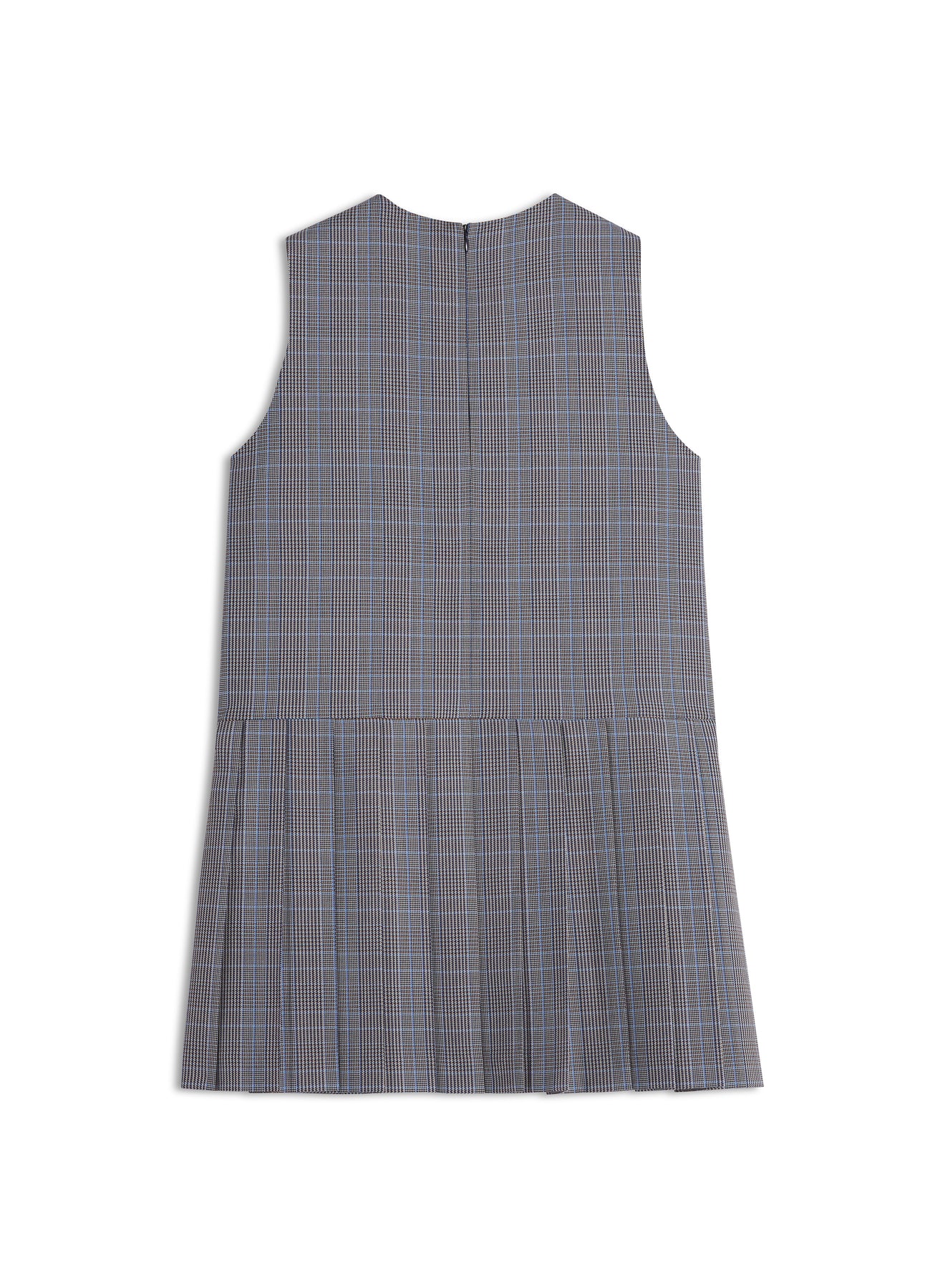 Pleated mini dress in a wool blend with Prince of Wales motif.