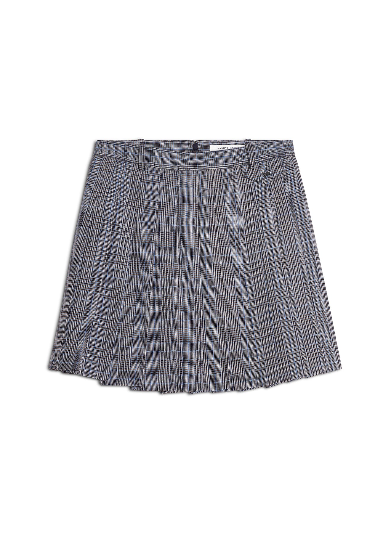 Pleated mini skirt in Japanese Prince of Wales wool.