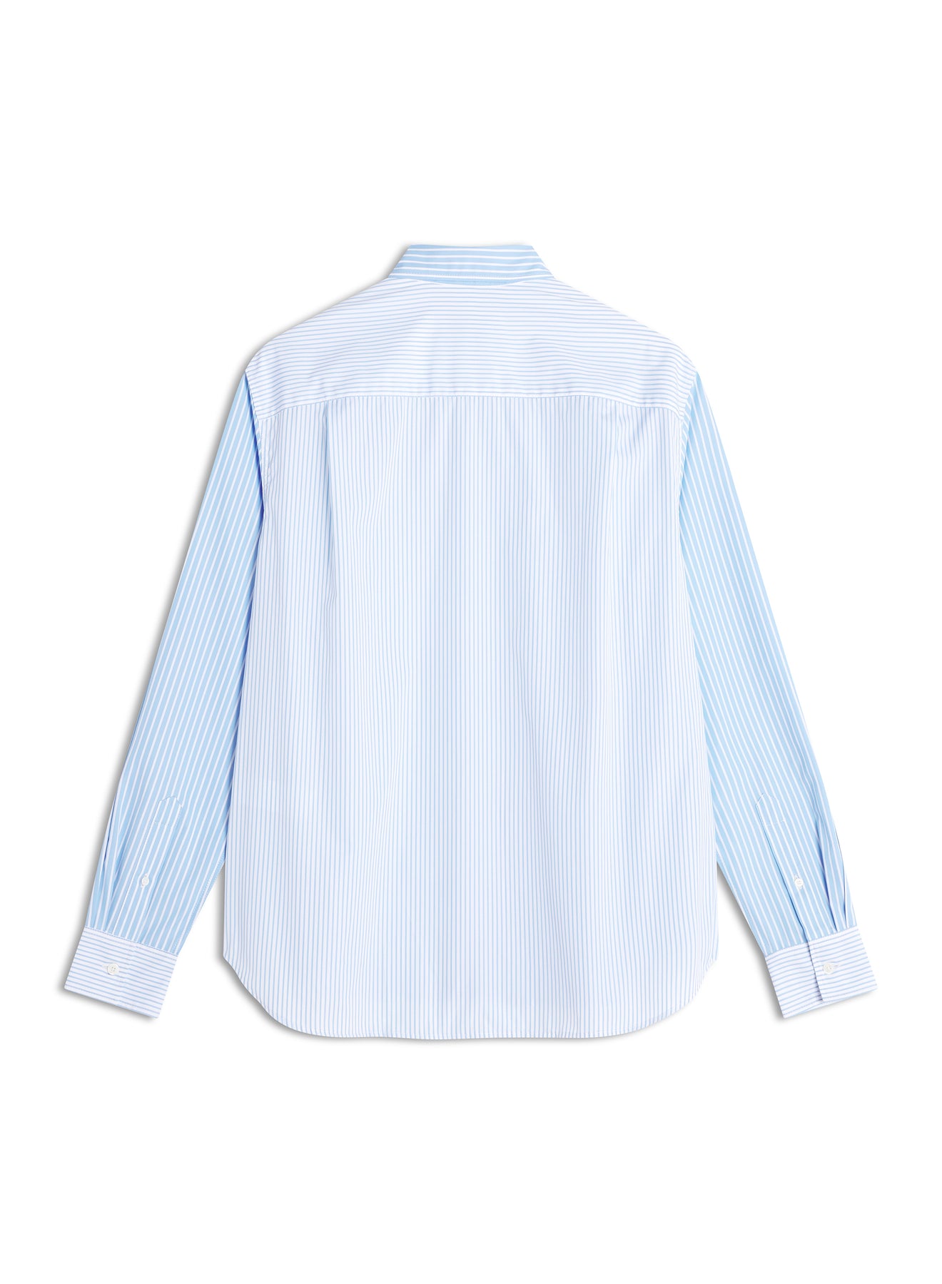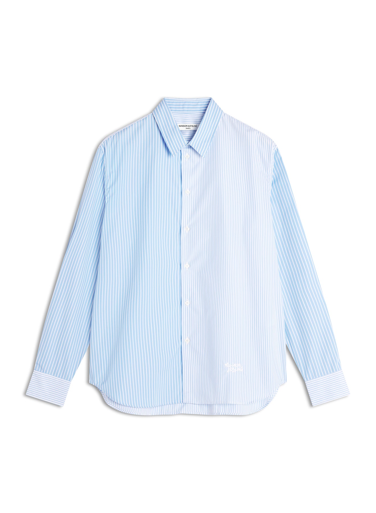 Striped cotton poplin patchwork shirt. Relaxed fit with Maison Kitsuné Handwriting embroidery.