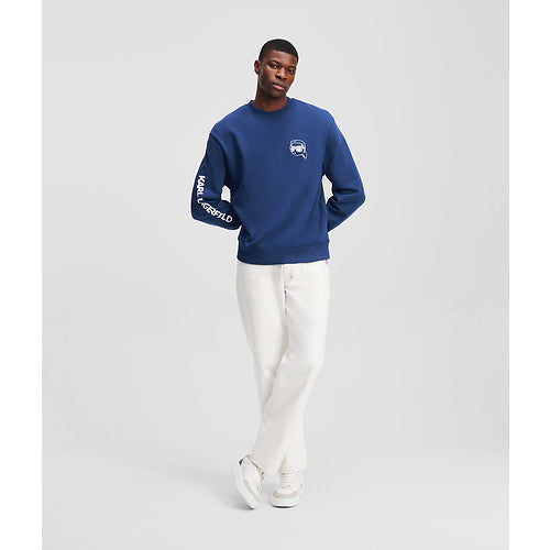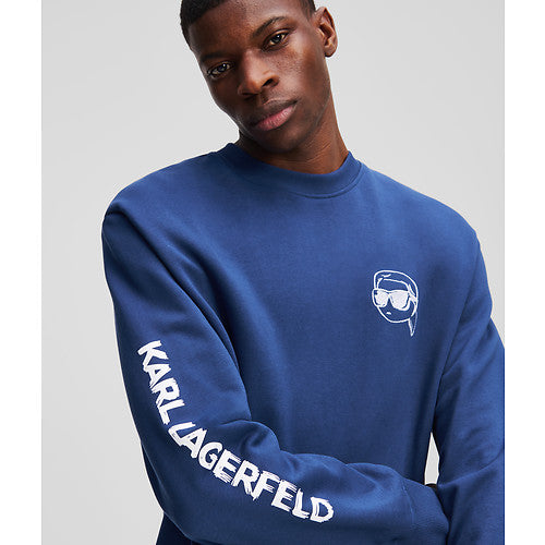 This sweatshirt offers comfort and style with bold IKON artwork adorning the back. The unmistakable KARL LAGERFELD logo running down the outer sleeve completes this statement-making essential.