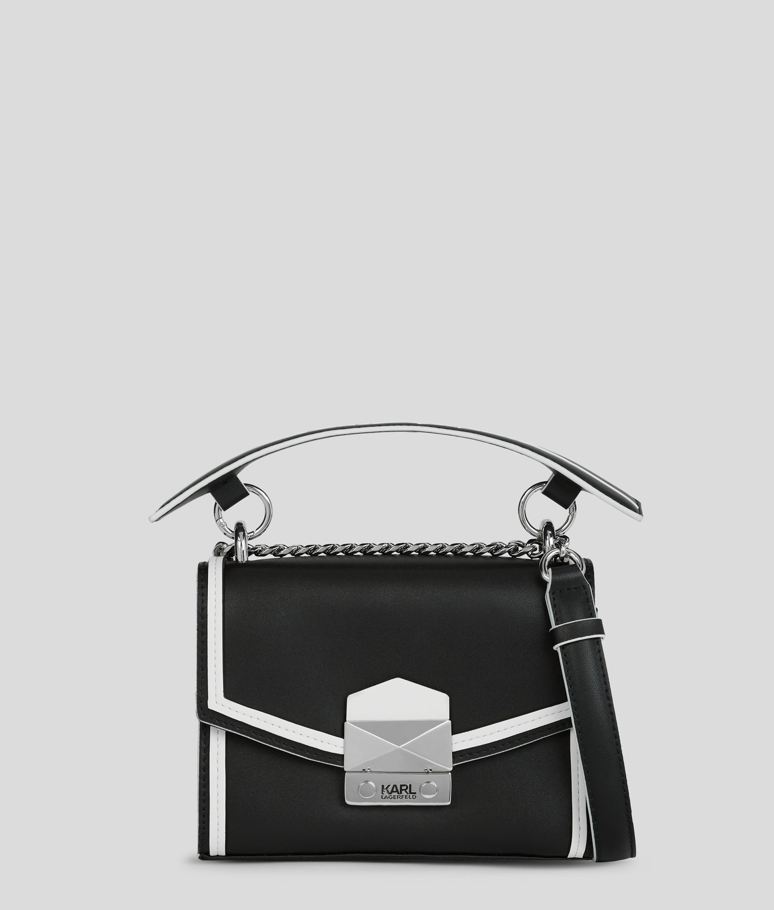 Sleek, modern, and hands-free, the K/Style Contrast Crossbody is perfect for everyday wear. Crafted with premium materials, it features a structured silhouette, adjustable crossbody strap, and bold contrasting color accents, finished with signature Karl Lagerfeld logo detailing.