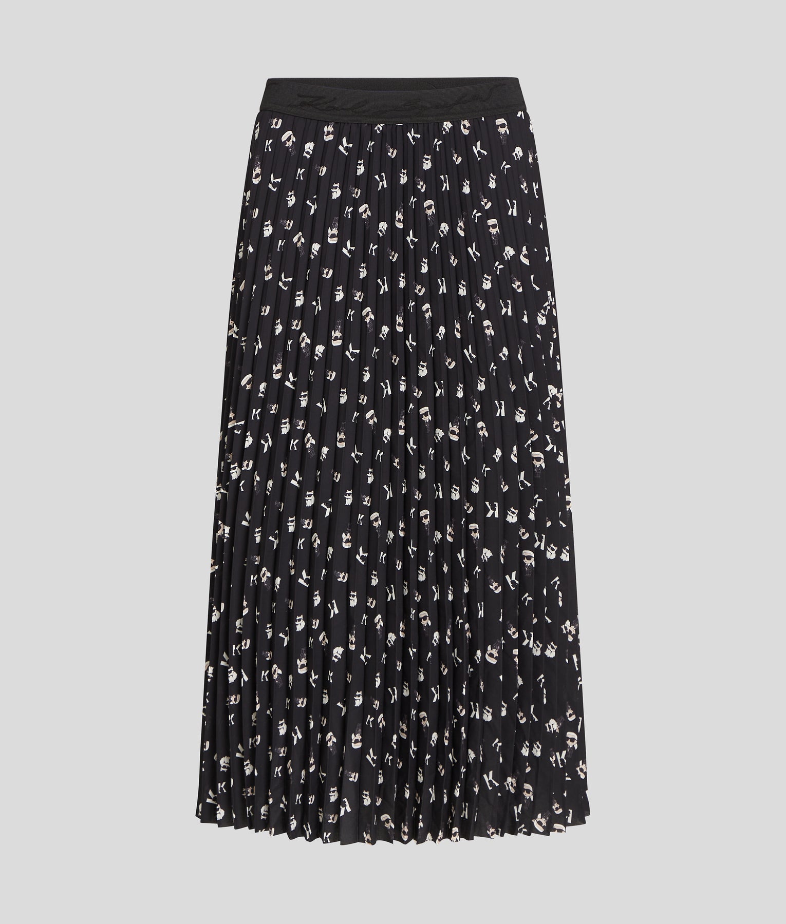 Modern, playful, and distinctly Karl, the Ikon Karl AOP Pleated Skirt brings graphic artistry to a classic feminine silhouette. Crafted from lightweight, flowing fabric, this skirt features precise pleating that adds movement and elegance to every step.