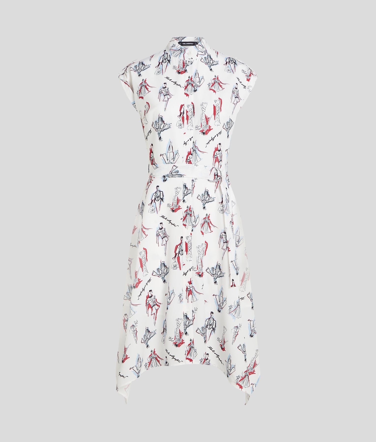 Make a bold artistic statement with the KARL SKETCH AOP Midi Dress. Featuring an all-over print inspired by Karl Lagerfeld’s iconic sketches, this dress blends creativity with timeless sophistication. Crafted from premium, lightweight fabric, it drapes elegantly for a flattering silhouette that moves with you.