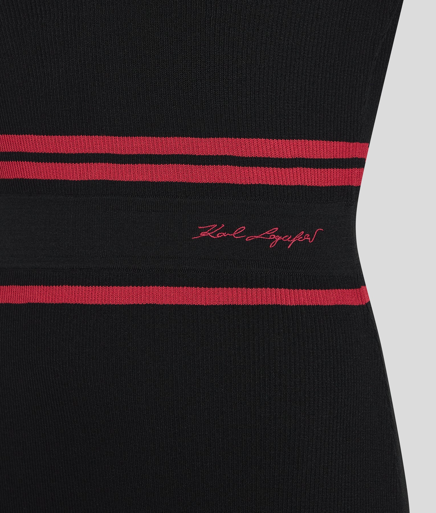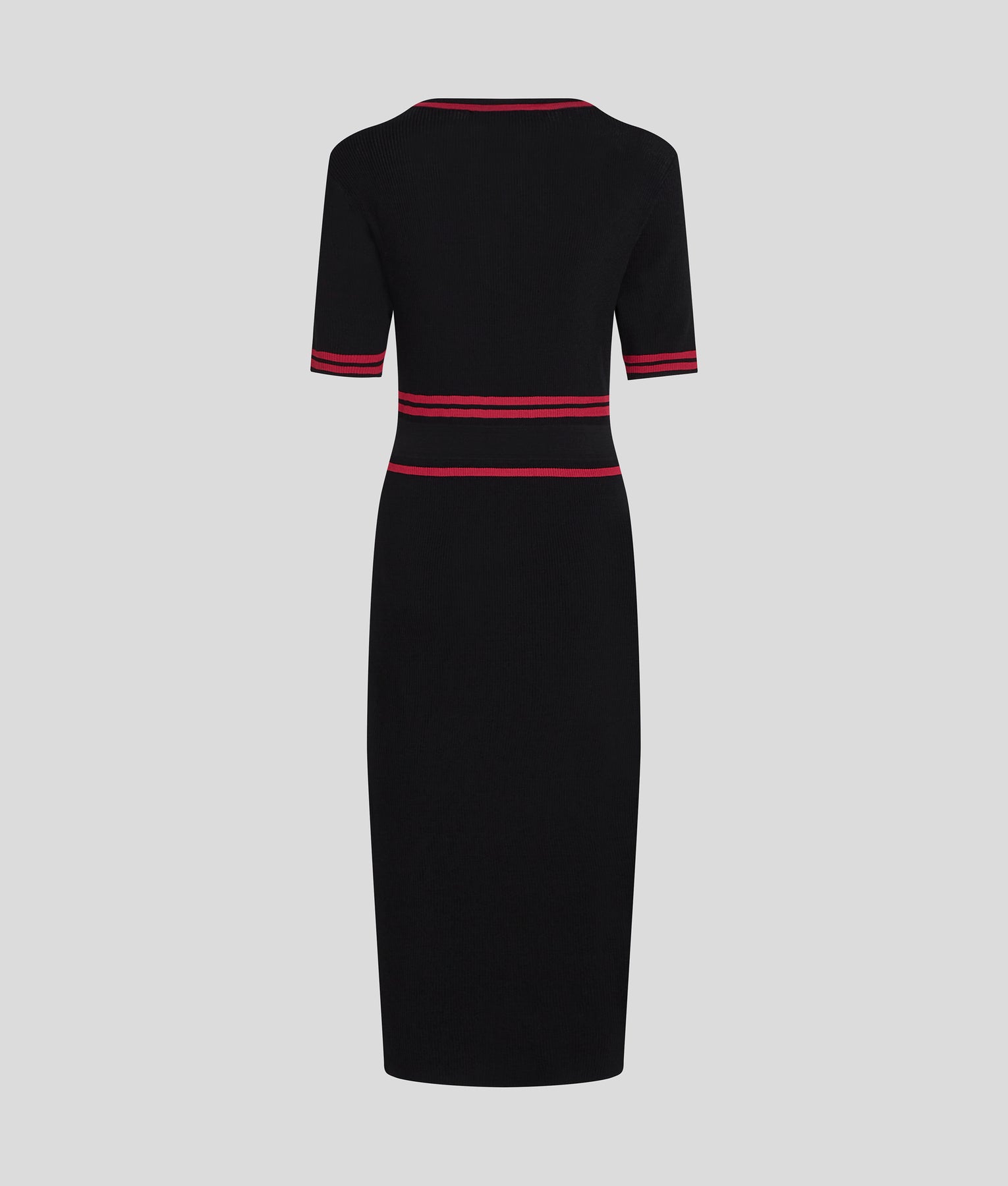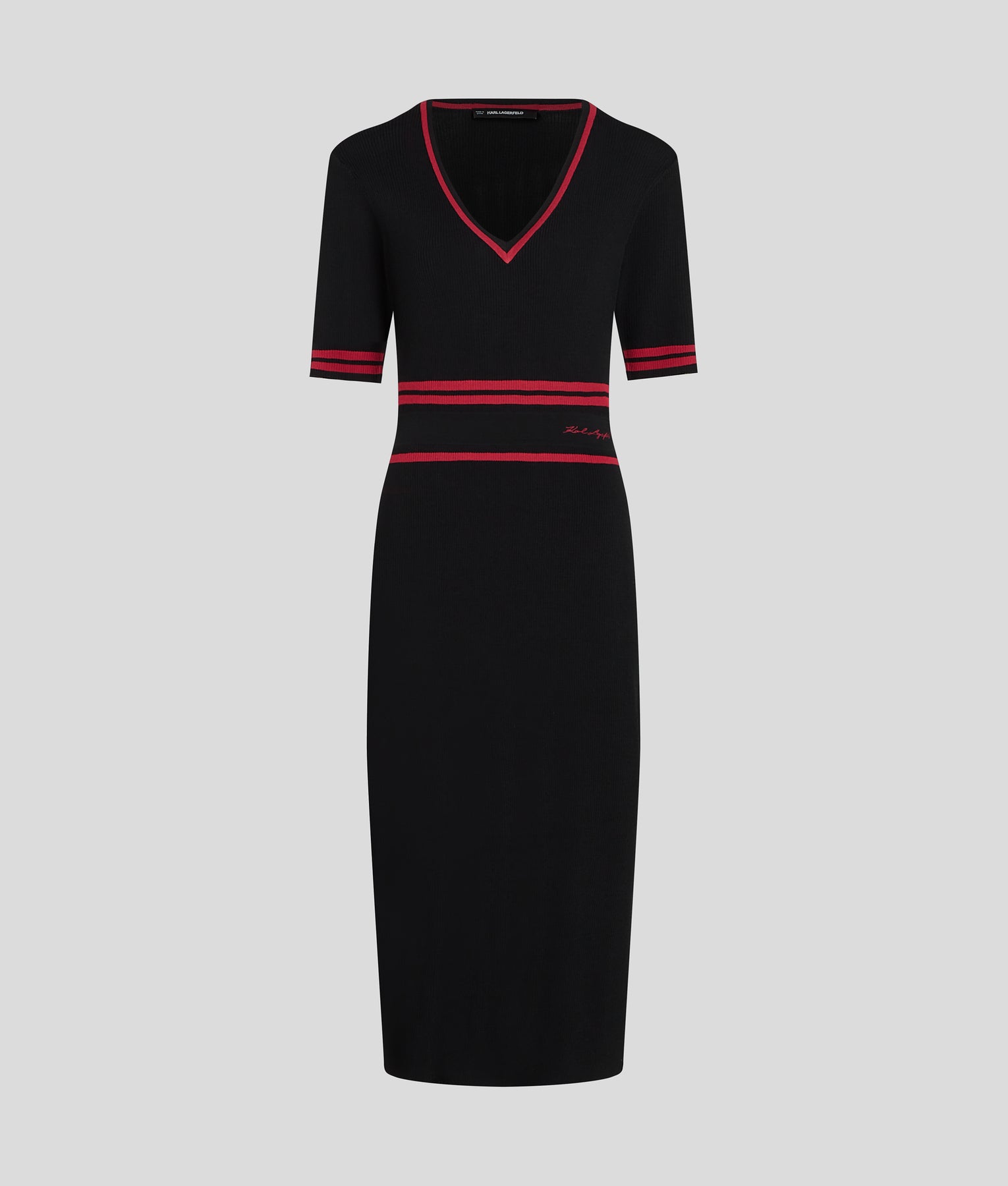 Elegant and versatile, the Karl Lagerfeld Signature V-Neck Knit Dress is crafted from soft, premium knit fabric for all-day comfort. Featuring a flattering V-neckline and subtle signature detailing, this dress combines modern sophistication with timeless style, making it perfect for both casual and smart-casual occasions.