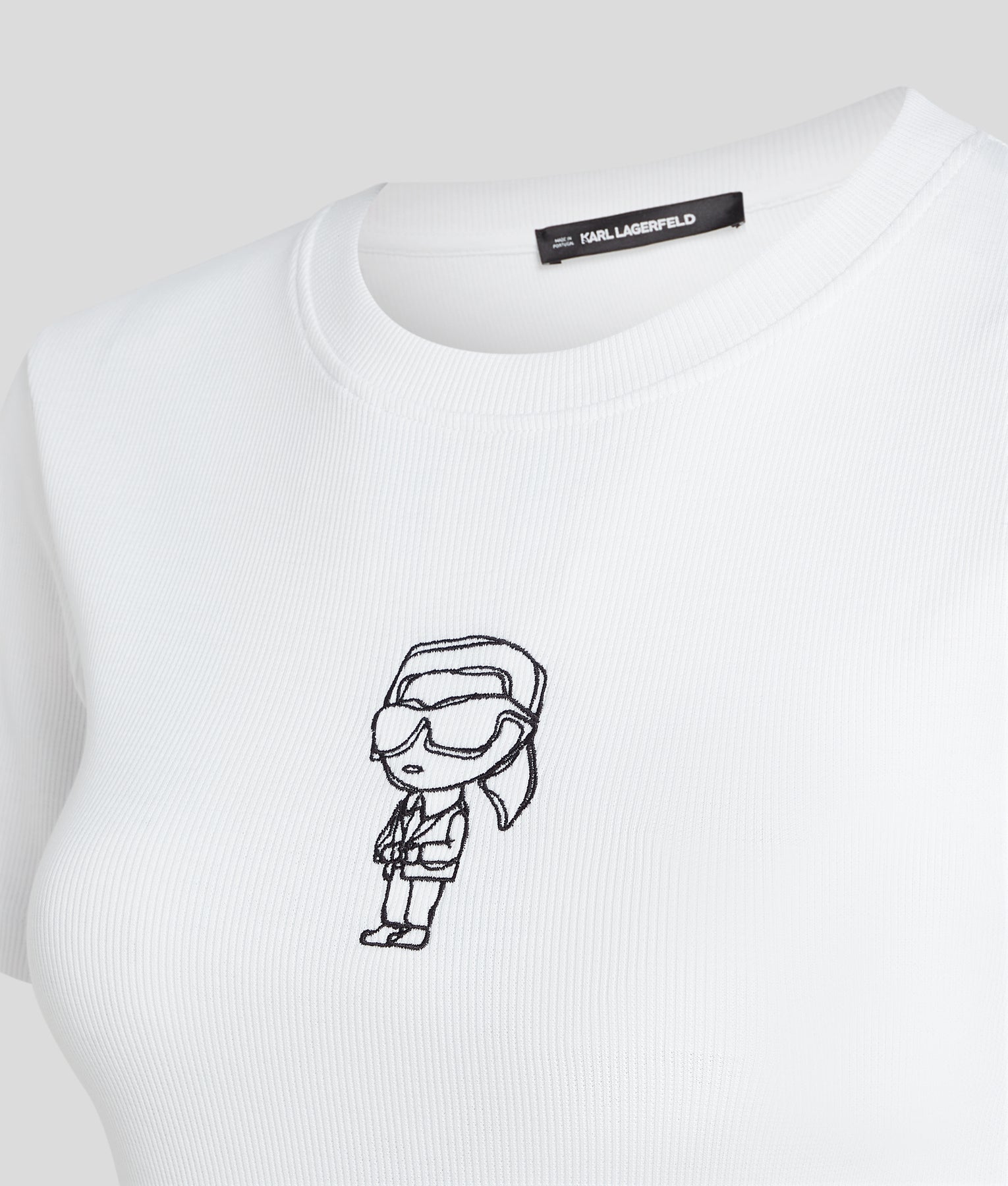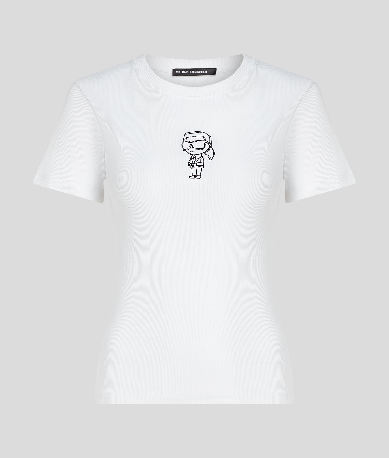 Effortless, modern, and unmistakably Karl, the Ikon Sketch Emb Rib T-Shirt elevates everyday style with subtle designer flair. Crafted from soft, ribbed cotton, this T-shirt offers a comfortable, slim fit that flatters the silhouette while providing all-day ease.